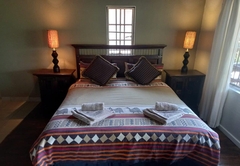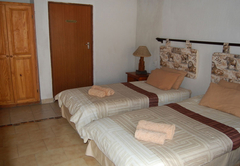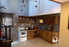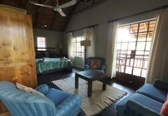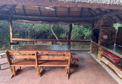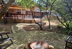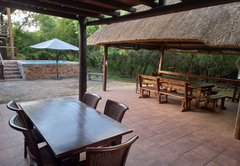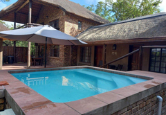 The house accommodates eight people comfortably in four double bedrooms which all have en-suite bathrooms. One bedroom has a double bed and three bedrooms have twin beds. One of the bedrooms is upstairs. Here there is a pleasant deck. Two of the other three bedrooms walk out onto the patio. Linen and towels are supplied, but please bring your own swimming towels. Two cosy little lounges and wildlife magazines enhance your retreat into the bush. There is also a TV with DStv (for which you do not have to bring your own decoder card) and free Wi-Fi. Meals and pizza's available. Special occasions can be catered. Please enquire on booking.