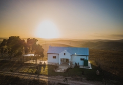 Enjoy the peaceful atmosphere that only a farm can offer in the comfort of a fully equipped three bedroom farmhouse. The main bedroom is furnished with a Queen-size bed and has an en-suite bathroom with a shower. The second bedroom also has a Queen-size bed and the third bedroom has two single beds. These two rooms both each have a full bathroom. The kitchen is well equipped, there is a dining area and lounge form part of the living areas. There is a fabulous fireplace in the living area, perfect for chilly winter, familiy afternoons. A ping-pong table and TV with DSTV complete the entertainment / living area. Guests have access to laundry facilities as well as an on-site braai. Both free WiFi and private parking are available for our guests.