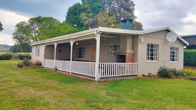 Meshlyn Farm Cottage has three bedrooms. There are two bedrooms furnished with a double bed and the third bedroom is furnished with four single beds. The first separate bathroom is fitted with a shower, toilet and basin. The second separate bathroom is fitted with a bath, toilet and basin. The kitchen is fully equipped for self catering. The lounge has a fireplace and a TV with satellite channels. Outside is a built in braai on the covered patio. The cottage is pet friendly by arrangement, as the garden is fully fenced off.