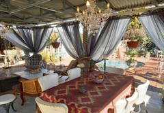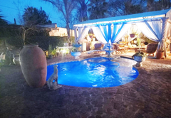 The Deluxe Suite is furnished with a King-size bed and the en-suite bathroom is fitted with a shower, toilet and basin. The room opens up with french doors onto the pool and entertainment area. Room facilities include air-conditioning, a desk, tea/coffee station with a variety of teas, coffee, rusks and bottled water, a bar fridge, safety deposit box, Wi-Fi, TV with satellite channels, hairdryer, iron, toiletries, gown and slippers.
