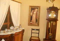 The Family Room is furnished with one double bed and two single beds, The bathroom is en-suite. Rooms are well decorated with antique wooden pieces and family pictures. Most of the rooms look out on the garden.