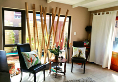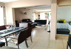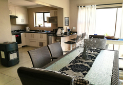 Die Lounge verfügt über eine Schlafcouch und einen Fernseher mit DStv. Der Essbereich führt auf den Grillbereich, der unseren Gästen zur Verfügung steht.