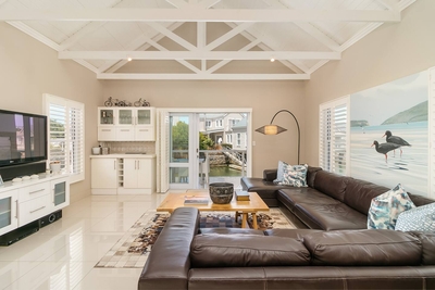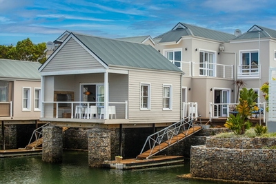 Erleben Sie unvergleichlichen modernen Komfort in unserem exquisiten Ferienhaus mit 3 Schlafzimmern, das anmutig an den ruhigen Kanälen der Thesen Islands in Knysna liegt. Mit spektakulärem Blick auf das Wasser verbindet diese moderne Oase Komfort und Luxus perfekt.