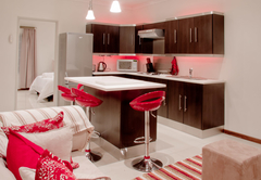 Moramba Cottage offers a modern and classy self catering cottage, ideally situated in the lush green suburb of Walmer in Port Elizabeth. The cottage sleeps a maximum of four people and is fully equipped for either a short or an extended stay. The bedroom is very spacious and has an air conditioner fitted. It contains a large comfortable queen size bed and two stylish and comfortable tub chairs with a small table and lamp where you can sit and relax or read a book. Also in the bedroom is a office table with drawers where you can sit and work. The modern and stylish bathroom contains a glass paneled shower with a shower column. Soap, shampoo and shower gel is provided. The lounge has plenty of seating and a large high density foam sleeper couch (sofa bed) in the living area that folds open into either two single beds or one king size bed. There is a large flat screen full HD TV in the lounge with a DVD player for watching movies and a DSTV decoder featuring the full premium DSTV package with over 80 TV channels and hundreds of music channels. The cottage contains a modern open plan kitchen with a central island with bar stools that flows the space into the lounge. It contains a stove, plates, cups, glasses, wineglasses, cookware, cutlery, a stainless steel kettle, a toaster, a full size fridge and everything else you may need for an extended stay (If it's not there, we'll be happy to get it for you). The living area opens up to a private outdoor braai and entertainment area with outdoor furniture and a weber kettle braai. Secure undercover parking is also provided and the entire property is secure behind an electric fence. Additional Features: • Free Wi-Fi internet access