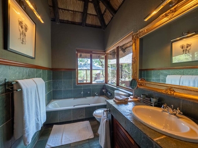 Die Suiten der Ndlovu Safari Lodge strahlen Luxus und Eleganz aus und bieten geräumige Unterkünfte. Ausgestattet mit einem Kingsize-Bett und einem eigenen Badezimmer mit Badewanne, Dusche, Toilette und zwei Waschbecken. Genießen Sie Annehmlichkeiten wie ein privates Tauchbecken, eine Nespresso-Maschine, eine kostenlose Minibar, voll klimatisierte Innenräume, eine Außendusche und -badewanne, eine Lounge mit Kamin, kostenloses WLAN und einen All-Inclusive-Verpflegungsplan.