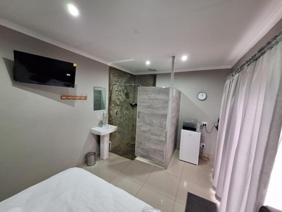 The Deluxe Double Room sleeps two guests and is furnished with a double bed. The en-suite bathroom is fitted with a shower, toilet and basin. The room is equipped with air-conditioning, a TV with DStv, Wi-Fi, Microwave, fridge and coffee / tea making facilities.