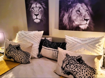 Zebras Triple Room is furnished with a Queen-size bed and a single bed. The en-suite bathroom is fitted with a large walk-in shower, toilet and basin. The entrance is from a nice communal patio. The room has Wi-Fi, a sitting area, desk, fan, and air conditioning. In every room, you will find complimentary mineral water, chocolate, toiletries, hairdryer and plug adapters.