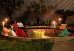 Feuerstelle mit Sitzgelegenheiten, um das Nachtleben zu beleuchten und romantische Cocktails mit Ihren Liebsten zu genießen. Es gibt auch einen 6-Sitzer-Whirlpool, der gebucht werden kann.