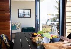 Tiger Shark is furnished with a King-size bed and a double sleeper couch for two children. The open plan bathroom is fitted with a shower, bath, toilet and basin. Rooms include complimentary tea, coffee and mineral water. Also included are fresh fruit, flowers, air-conditioning, smart TV with Netflix, bathrobes, slippers, Wi-Fi, mini-bar, personal safe, hairdryer and patio.
