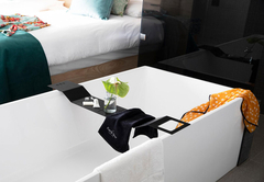 Black Tip Shark is furnished with a King-size bed which can convert to twin beds. The open plan bathroom is fitted with a shower, bath, toilet and basin. Rooms include complimentary tea, coffee and mineral water. Also included are fresh fruit, flowers, air-conditioning, smart TV with Netflix, bathrobes, slippers, Wi-Fi, mini-bar, personal safe, hairdryer and patio.