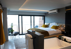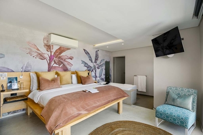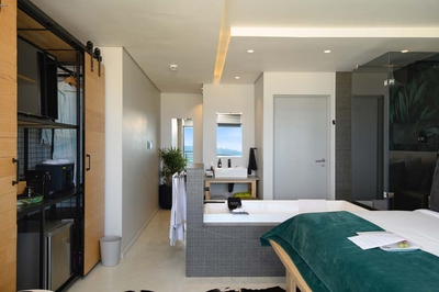 Alle Zimmer sind offen gestaltet und verfügen über eine luxuriöse Badezimmeraufteilung. Die Zimmerausstattung umfasst kostenlosen Tee, Kaffee und Mineralwasser. Ebenfalls enthalten sind frisches Obst, Blumen, Klimaanlage, Smart-TV mit Netflix, Bademäntel, Hausschuhe, WLAN, Minibar, persönlicher Safe, Haartrockner und Terrasse.