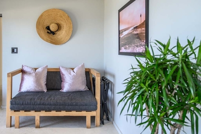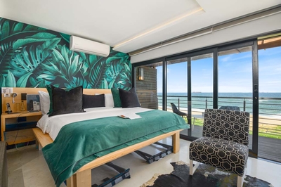 Great White Shark is furnished with a King-size bed and a double sleeper couch for two children. The open plan bathroom is fitted with a shower, bath, toilet and basin. Rooms include complimentary tea, coffee and mineral water. Also included are fresh fruit, flowers, air-conditioning, smart TV with Netflix, bathrobes, slippers, Wi-Fi, mini-bar, personal safe, hairdryer and patio.