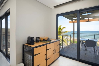 Im North Star Micro Hotel sind alle Zimmer auf der ersten und zweiten Etage Zimmer mit Meerblick, eigener Terrasse und Blick auf die kurvenreiche Küstenstraße darunter und den endlosen Horizont des tiefblauen Indischen Ozeans und der Schiffe, die in der Ferne auf den Hafen warten.