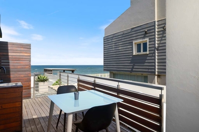 Garten mit privatem Tor zur persönlichen Nutzung und Gehweg vom Garten direkt zum Strand. Wenn Sie Sand unter Ihren Füßen nicht so mögen, können Sie auf dem Deckbereich trotzdem das Meer genießen und einen Cocktail genießen.