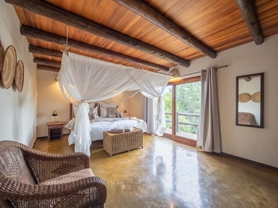 The 4-bedroom villa suites at NYATI Safari Lodge provide an expansive and luxurious retreat, offering 200 m² of space designed for families or groups seeking privacy and comfort. Each villa includes a master bedroom with an en-suite bathroom, featuring dual sinks and both indoor and outdoor showers, along with additional double rooms. Three of the bedrooms share a bathroom and are thoughtfully arranged to maximize space, with one room located on the first floor. The villa's open-plan living area leads to a large furnished terrace, where you'll find a private pool and breathtaking panoramic views of the Olifants River and the surrounding African bush. Here, you can relax, socialize, and enjoy the tranquility of the wilderness. Just a short stroll from the main lodge, the villa offers seclusion without sacrificing convenience. Modern amenities such as air conditioning, satellite TV, free Wi-Fi, and mosquito nets ensure your comfort, while the all-inclusive package covers fine dining, drinks, and unforgettable game drives, creating the perfect luxury safari experience.