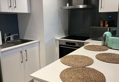 Oceans Luxury Apartment has one bedroom and one bathroom. The bedroom is furnished with a double bed. The bathroom is fitted with a shower, toilet and basin. The living area has a sleeper couch to accommodate one adult or two children. This unit features an open-plan living area with a large smart TV with satellite channels and Netflix, and a well-equipped kitchen including a washing machine and tumble dryer. Free Wi-Fi is included. The living area leads out onto the balcony, which offers lovely city views.