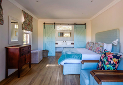 A Stone cottage on the rivers edge with a King-size bed and an en-suite bathroom. There is a fireplace and undercover braai area as well as Communal kitchen facilities and a Communal Hot Tub area.