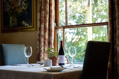 Lovely environment driving there. Enjoyed the look and feel of the historic building. Lovely old gardens with spring blossoms. Lovely views over the valley. Exellent restaurant .