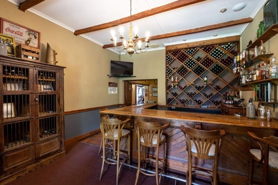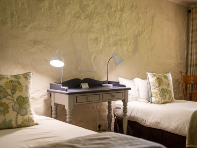 Has a King Size bed in one room and two single beds in the other room, each with their own en-suite bathroom. All rooms have open fireplaces, tea and coffee making facilities, heated towel rails, TV's, hairdryers and private patios. All our rooms have Open View HD TV and NOT DSTV. In the pub we have a TV with all the sports channels and Sky News.