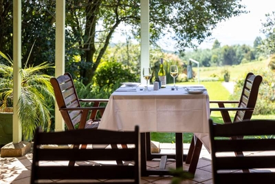 Mit atemberaubender Aussicht auf das Karkloof Valley, das das Restaurant umgibt, ist es der perfekte Ort, um zu entspannen und ein leckeres Essen zu genießen.