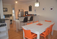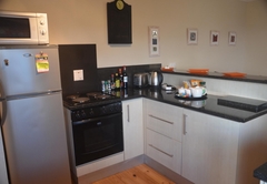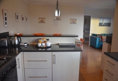 The apartment has three bedrooms each with an en-suite bathroom. Two rooms have Queen-size beds and the third room is furnished with two single beds. There is an open plan kitchen and living area.The kitchen is fully equipped for self catering. Other facilities include DStv (selected channels), a Weber and an iPod docking station.