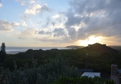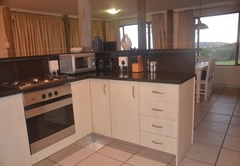 The apartment has two bedrooms; one is en-suite and furnished with a Queen bed and the second room is furnished with two single beds. There is a separate bathroom. There is an open plan kitchen and living area which boasts sea and mountain views. The kitchen is fully equipped for self catering. Other facilities include DStv (selected channels), a Weber and an iPod docking station.