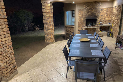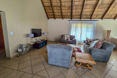 Es gibt eine offene Küche, die komplett mit allem ausgestattet ist, was Sie brauchen, ein Esszimmer und eine gemütliche Lounge mit einem Flachbild-TV und DStv.