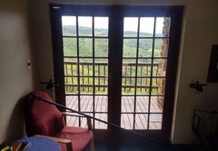 Partridge offers lovely views of the valley below and the endangered Bald Ibis colonies. The bedroom is furnished with a Queen-size bed. The bedroom has cupboard space and a vanity. The en-suite bathroom is fitted with a shower. The chalet is serviced daily, and the bedding, towels are provided. The unit has a kitchenette with a fridge, a microwave, a stove, crockery, and cutlery. The chalet also features a fireplace and a private patio with braai facilities.