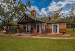 Im Freien befindet sich eine große, gepflegte Rasenfläche, eine geräumige überdachte Terrasse mit eingebautem Grill, perfekt für ein Grillfest und einen Sundowner, während Sie die „Magie“ unserer Lowveld-Sonnenuntergänge in friedlicher Umgebung beobachten.