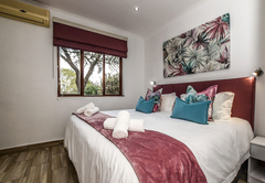 Penny's Place on Greenway 45 has three en-suite rooms furnished with twin or King-size beds. The en-suite bathrooms are fitted with a shower, toilet and basin. All of the rooms have Wi-Fi, a TV with Open View channels and air conditioning. Each room has its own entrance or can be accessed through interleading doors to the kitchen. There is a fully equipped open plan, modern kitchen with a granite dining island, washing machine, oven, gas hob and all the utensils required. The lounge has a fireplace. Outdoor is a large expanse of manicured lawn, a spacious under cover patio, with built in braai, perfect for a braai and sundowners, while watching the “magic” of our Lowveld sunsets, in peaceful surroundings.