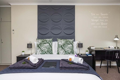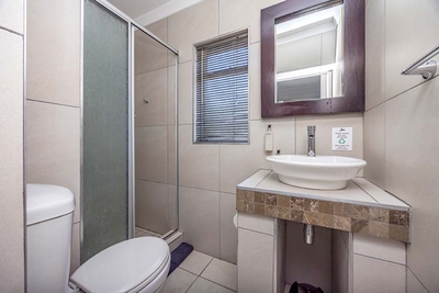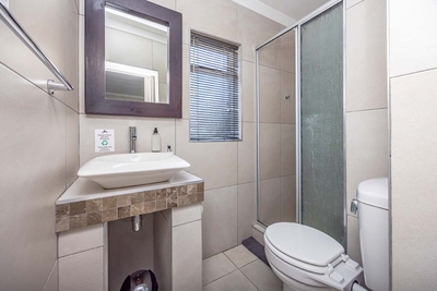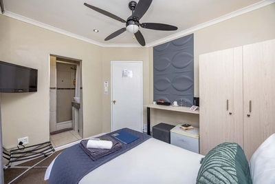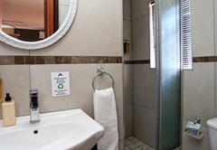 This is a Standard Room furnished with a double bed. The en-suite bathroom is equipped with a shower, hand basin and WC. Other facilities nclude air-conditioning, free Wi-Fi, TV. Coffee and tea station and overlooking Tygerberg Nature Reserve.