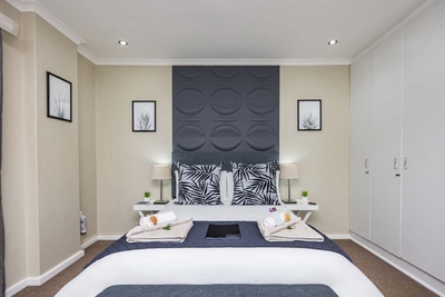This is a Double Room furnished with a double bed. The en-suite bathroom is equipped with a shower, hand basin and WC. Other facilities nclude air-conditioning, free Wi-Fi, TV. With kitchenette and mini bar fridge, coffee and tea station, microwave, cooking utensils and crockery. Stunning view of Table Mountain.