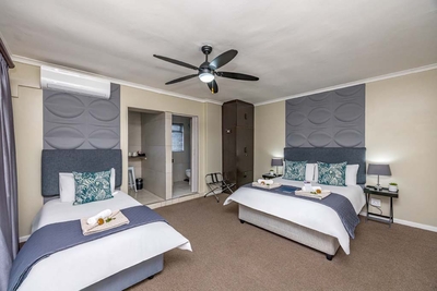 A double or single room. This spacious room is situated upstairs with spectacular views over Table Mountain. The en-suite bathroom contains a shower and a relaxing corner bath. Included a minibar fridge, air-conditioning , coffee/tea , TV and Free Wi-Fi.