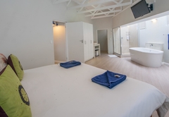 En-suite family room. Sleeps four. One king size bed. One set of bunk beds. Air conditioned. Satellite television. Wi-Fi. En-suite bathroom. Shower only. All rooms are furnished with quality furnishings, comfortable beds and have en-suite bathrooms. Rooms include a fan, heater, Wi-Fi, safe. TV with DSTV. All beds equipped with Sealy Hilton Deluxe mattresses and 100% percale linen.