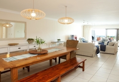 This is a three bed, two bath, self-catering apartment sleeps eight guests. One king size bed, two single beds, one queen size bed and one set of bunk beds. Fridge/freezer, oven/stove top, dishwasher, washing machine and tumble dryer. Balcony with ocean view and barbeque facilities. Satellite television. Wi-Fi. 2 x en-suite bathroom (two bath tubs, two showers in total)