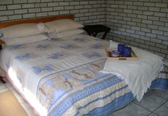 Two bedroom self-catering units.One room with double or Queen-size bed and one room with twin beds. There is a single sleeper in the lounge. The kitchen is fully equipped and the patio has a braai area. We provide bedding but not towels. This unit has no inside fire place.