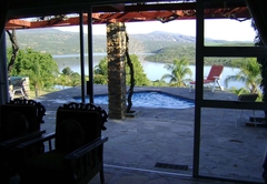 Lovely views of the lake and surrounds, pool on the patio, inside fireplace, outside braai. This unit is decoder ready should you wish to bring yours with to watch TV. Three bedrooms, one en-suite with double bed and the other two with twins and shared full bathroom. Beds for two children under 12 yrs in the lounge.