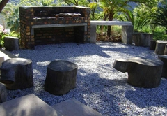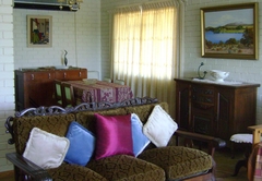 Three bedrooms and two bathrooms. Two rooms with double beds and one with two twin beds.This unit has an inside fire place. One unit has a queen size bed and two rooms with twin beds-no fire place. The 7-sleeper cottage can accommodate up to a maximum of 6 adults and 1 child under 12-years old. All of the cottages have outside braai's and indoor fireplaces. The living areas open up onto shaded patios.