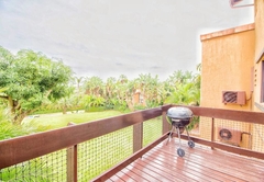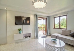 The villa is conveniently located within walking distance to many leisure and sports facilities. The security controlled estate offers beach access, swimming pools, tennis and squash courts, golf, a children's' playground and bird watching. The unit is within walking distance of the beach and restaurants and is located 15km from Margate, 18km from the Wild Coast Sun Casino and Water World. The unit can accommodate four people in two bedrooms and it has one bathroom.The main bedroom has a queen-size bed and the other room has twin beds, both share one bathroom. The villa is located on the first floor with a sea view and air-conditioning. Bed linen is included. The kitchen is fully equipped for self catering and features a microwave, stove, oven, fridge-freezer, cutlery and crockery. The lounge area offers comfortable seating and a TV with a selection of DStv channels. There is also a DVD player and braai facilities are available on the patio, as well as secure covered parking.
