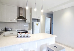 Die Küche ist komplett für Selbstversorger ausgestattet und verfügt über eine Mikrowelle, Herd, Backofen, Kühlschrank mit Gefrierfach, Besteck und Geschirr. Der Loungebereich bietet komfortable Sitzgelegenheiten und einen TV mit einer Auswahl an DStv-Kanälen. Es gibt auch einen DVD-Player und Grillmöglichkeiten auf der Terrasse sowie sichere überdachte Parkplätze.