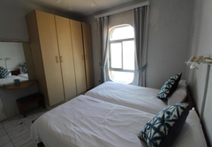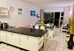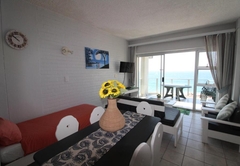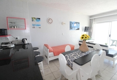 Seagull 513 is a holiday apartment in Margate consisting of two bedrooms. The main bedroom features a Queen bed and an en-suite bathroom equipped with a bath, toilet, and washbasin. The second bedroom offers two single beds and an en-suite bathroom with a shower, toilet, and washbasin. Additionally, there is a single bed in the lounge-dining area. Linen is provided, but guests need to provide their own towels. There is a lounge, dining room, and kitchen that is equipped for self-catering accommodation, with a microwave, kettle, toaster, cutlery, and refrigerator. There a TV and an OVHD Decoder. There is no Wi-Fi available. Each unit has a parking bay.