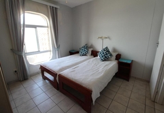 Das Hauptschlafzimmer ist mit zwei Einzelbetten ausgestattet und das zweite Schlafzimmer ist mit zwei Einzelbetten ausgestattet. Es gibt auch ein Einzelbett im Wohnbereich. Die Einheit verfügt über zwei Badezimmer, eines mit Badewanne, Toilette und Waschbecken und das andere mit Dusche, Toilette und Waschbecken. Gäste müssen ihre eigenen Handtücher mitbringen, Bettwäsche wird jedoch gestellt.