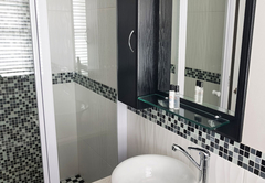 Seasons of Serenity has four bedrooms. Two of the bedrooms have a Queen-size bed and two have two single beds each. All of the rooms have an en-suite bathroom with a shower, one also has a bath. The kitchen is fully equipped for self catering and also includes a dishwasher, washing machine and tumble dryer. The living room has a TV with satellite channels and free Wi-Fi. This leads onto a balcony with sea views. The house has an indoor built in braai. A double garage is available for guests to use.