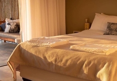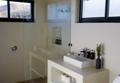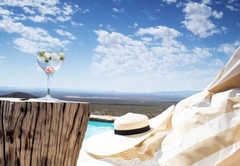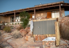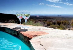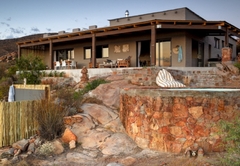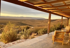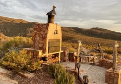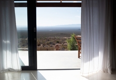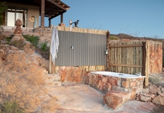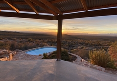 Elevated above the Tankwa plains on the lower foothills of the majestic Swartruggens, Serenity offers a stylish, cool, free-flowing space from which to observe the vast surrounding array of natural beauty. Favourite features include a wide covered veranda, a sparkling rock pool as well as an outdoor shower and bath surrounded by stunning natural rocky terrain. Featuring three stylishly appointed bedrooms, two bathrooms (one with shower only) and an exquisite open plan lounge, dining and kitchen area opening onto a sweeping 3.5 meter deep verandah, Serenity can accommodate up to six guests. An outdoor built-in barbecue with seating provides the perfect location for tasty cook-ups while observing the spectacular evening sunset, glass of wine in hand. Tierkloof Serenity boasts magnificent views of the surroundings and comprises three bedrooms and two bathrooms. Two of the bedrooms are furnished with a Queen-size bed each while the third bedroom has two single beds. The first bathroom is fitted with a bath and shower while the second bathroom has a shower only. In addition, the house also has an outdoor bath and shower. The kitchen is well-equipped with a fridge-freezer, gas stove and oven. The open-plan living area has a dining table, comfortable seating and a fireplace for the chilly winter evenings. The living area opens onto a deck which boasts an elevated swimming pool and a long patio with chairs and daybeds. There is also free Wi-Fi and a small Bluetooth speaker available for guests to use.