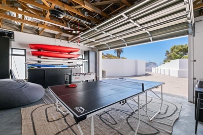 Die von großen Fenstern eingerahmte Lounge bietet bequeme Sitzgelegenheiten und einen Panoramablick auf das Meer und schafft einen ruhigen Ort zum Entspannen nach einem Tag voller Erkundungen. Zur Unterhaltung verfügt die Villa über einen Tischfußballtisch, eine Dartscheibe und eine Tischtennisplatte, die Familien und Gruppen von Freunden stundenlangen Spaß bescheren.