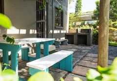 The bedroom is furnished with a double bed and there is a sleeper couch in the lounge. The bathroom is fitted with a bath/ shower combo, toilet and basin. There is an open plan lounge and kitchen with a TV and DStv. The kitchen is well equipped for your self catering stay and there is a breakfast bar with bar stool where you can enjoy your meals. Outside there is a patio with a table and chairs and braai facilities. Secure parking is provided for one vehicle.