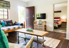 Es gibt eine offene Lounge und Küche mit TV und DStv. Die Küche ist für Ihren Selbstversorger-Aufenthalt gut ausgestattet und es gibt eine Frühstücksbar mit Barhocker, wo Sie Ihre Mahlzeiten genießen können.