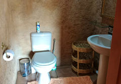This chalet is in a very private position with it own small seating area with a braai. Inside it sleeps 2 in a double bed. The chalet has a well equipped kitchen area with seating. There is a bathroom with a bath and outside is a shower (hot and cold water).