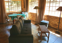 Two bungalows with three double rooms each plus a living room/kitchen with fireplace. The master bedrooms are en-suite and both have sleeper couches and inter leading door from the main bedroom for children's access. There is a fire-place and a TV with DStv in the living area.