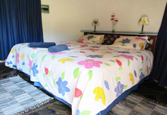 The covered veranda allows for a lovely view over the valley. Caters for 2 adults and 3 children or 5 adults in 2 separate bedrooms. Main with king-size and other with 3 x three-quarter beds. Bathroom with shower. Living room with fire-place and DStv.